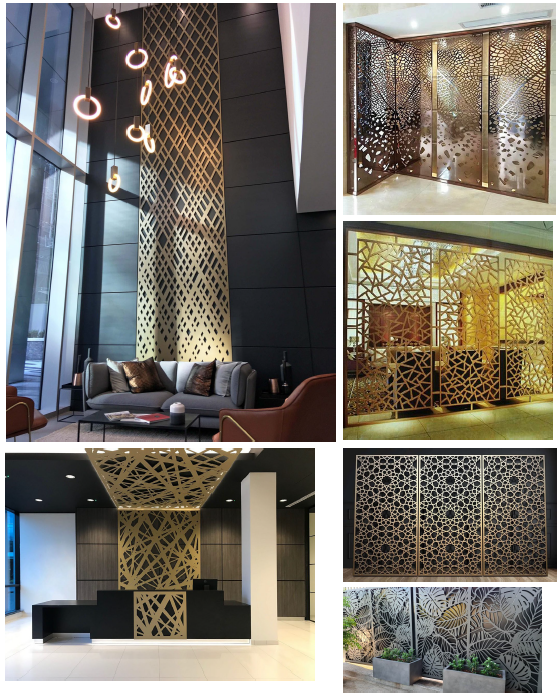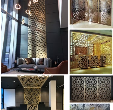 6. CNC-cut decorative panels (Mashrabiya) & metal partitions.